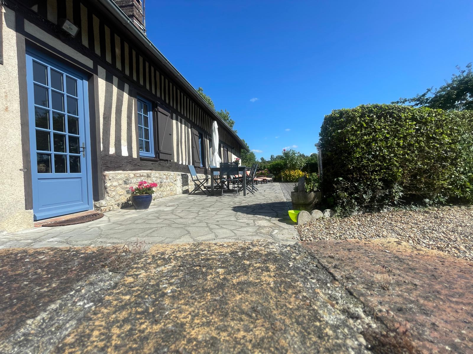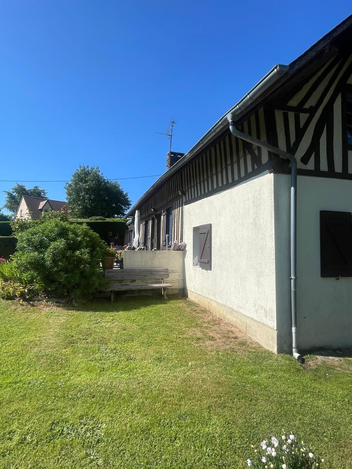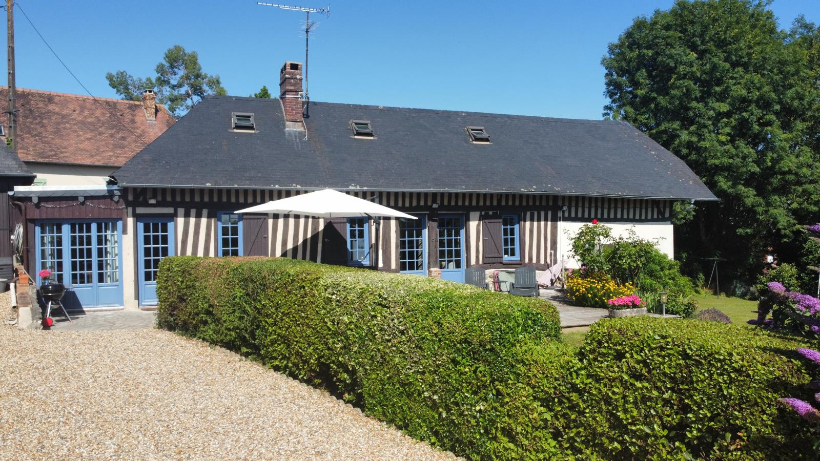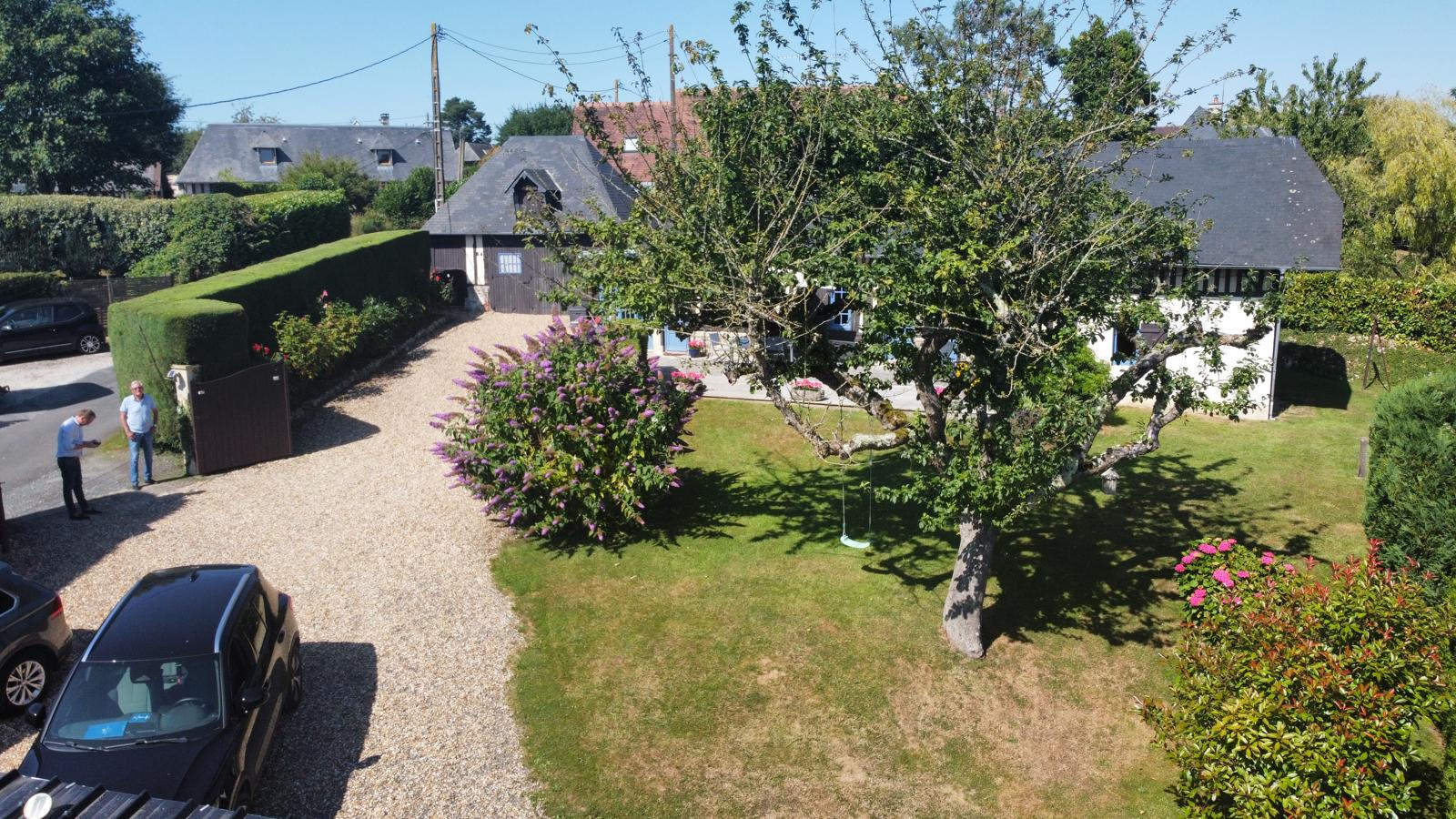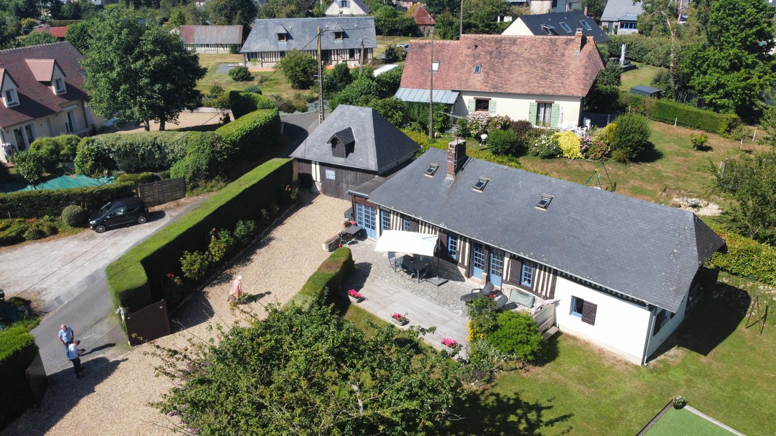 Jolie Maison Normande sur une parcelle de terrain de 1152 m² avec vue dégagée et comprenant rdc : cuisine aménagée et équipée , une salle de billard séjour, grand salon avec cheminée, buanderie, salle de bains avec W.C; une chambre avec W.C. à l'étage : couloir intégral équipé de placards intégrés desservant : trois chambres, salle de douche et W.C. Accolé : garage, atelier Le bien est vendu meublé