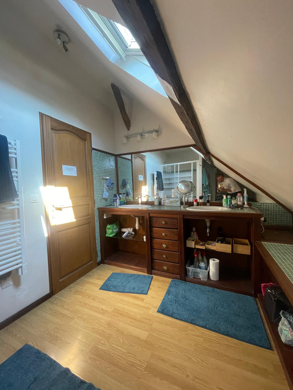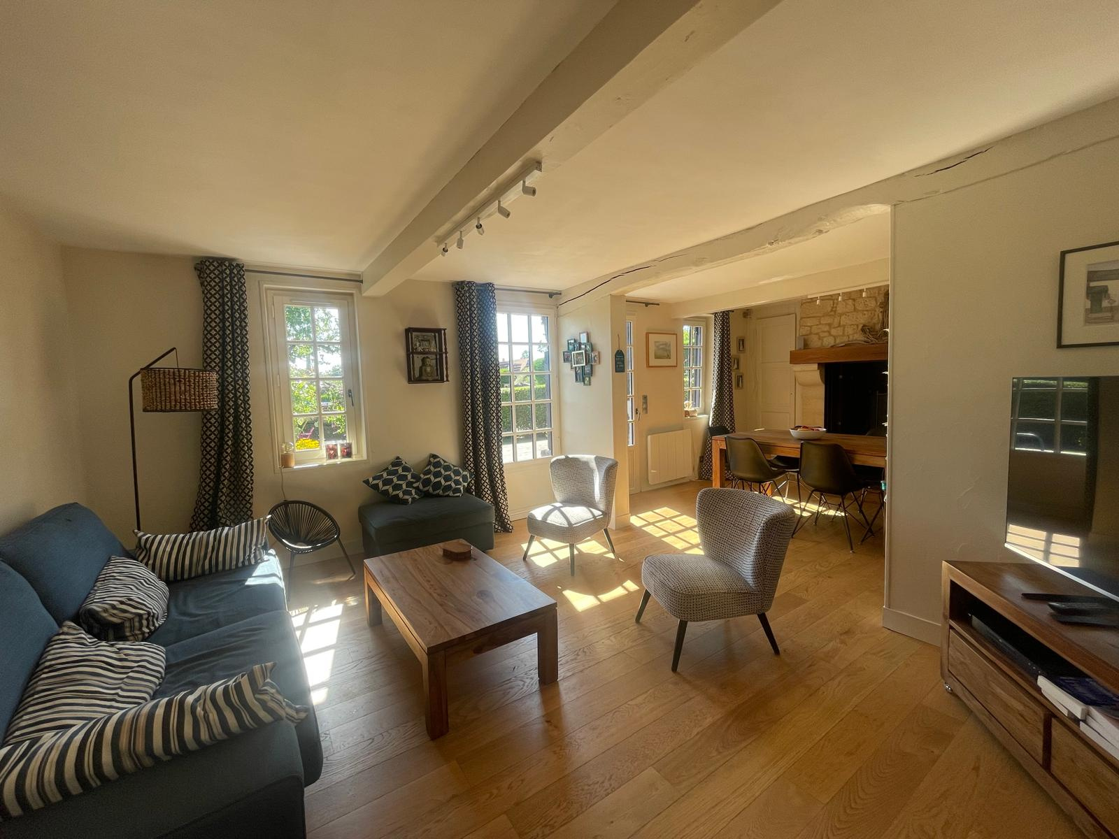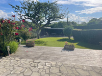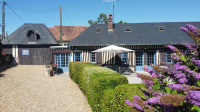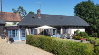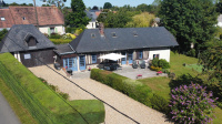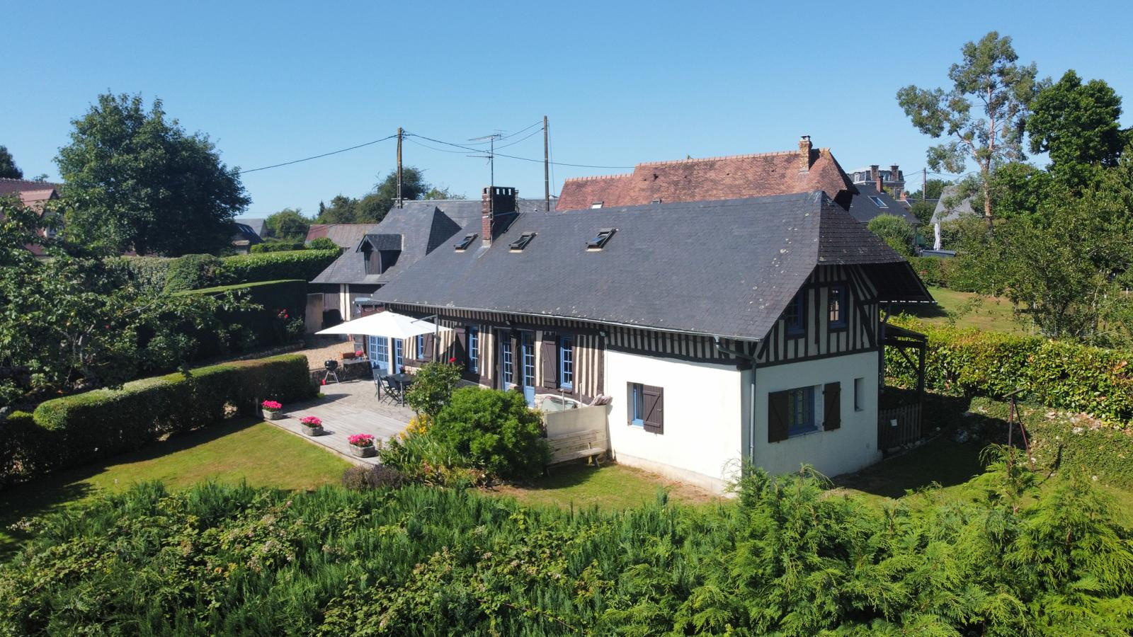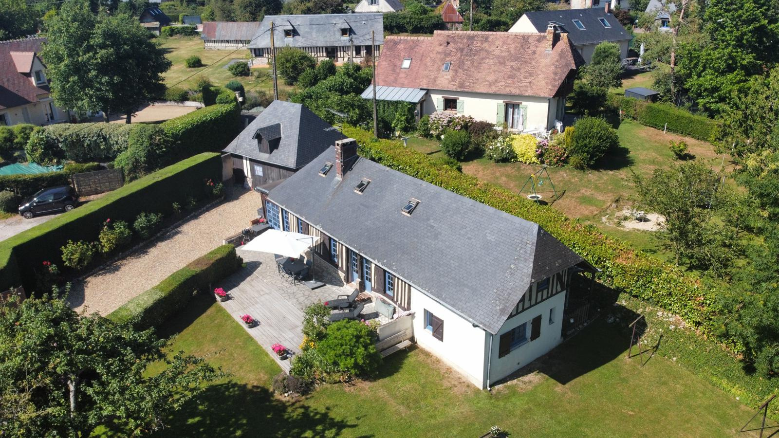 Jolie Maison Normande sur une parcelle de terrain de 1152 m² avec vue dégagée et comprenant rdc : cuisine aménagée et équipée , une salle de billard séjour, grand salon avec cheminée, buanderie, salle de bains avec W.C; une chambre avec W.C. à l'étage : couloir intégral équipé de placards intégrés desservant : trois chambres, salle de douche et W.C. Accolé : garage, atelier Le bien est vendu meublé