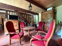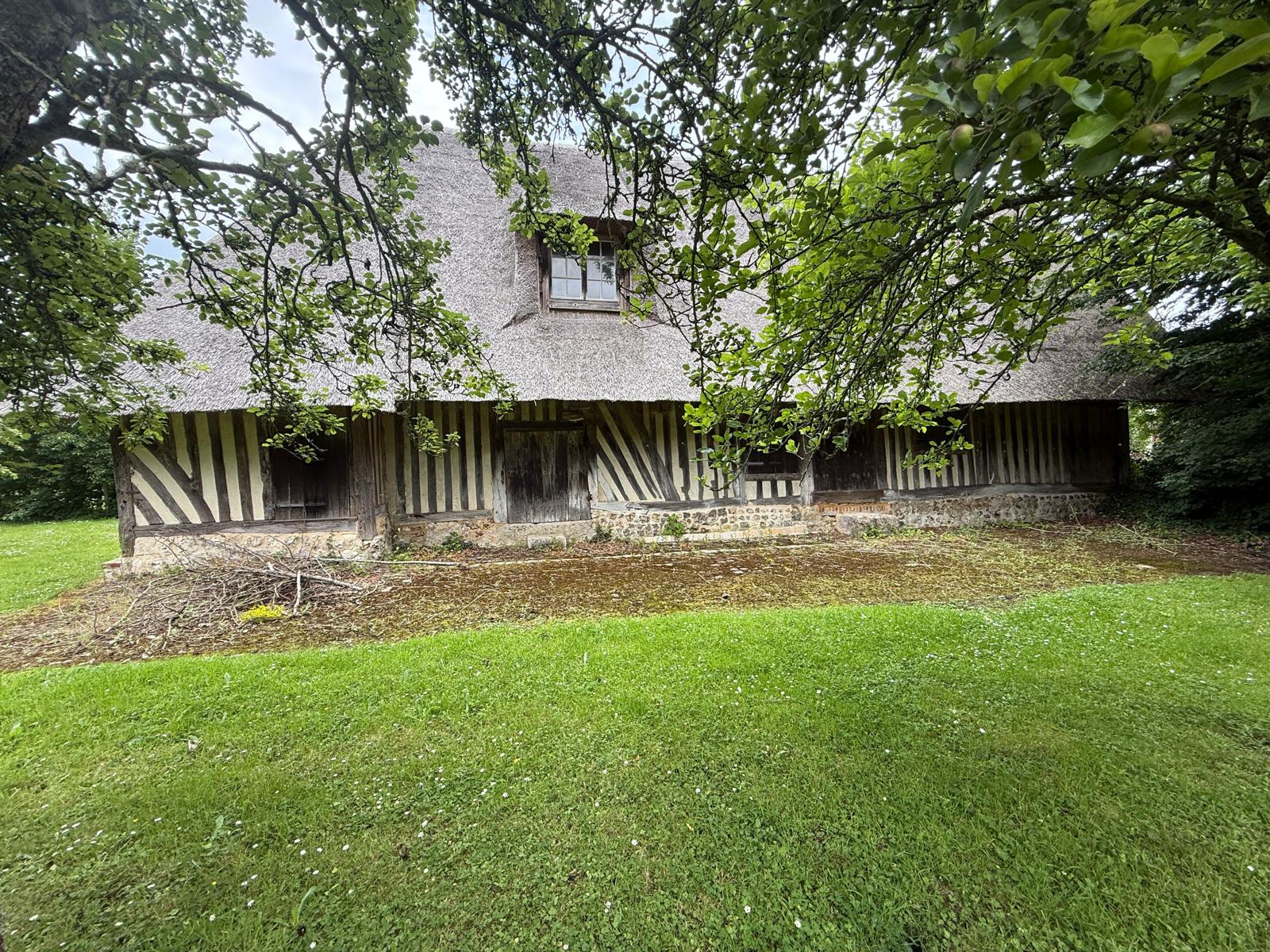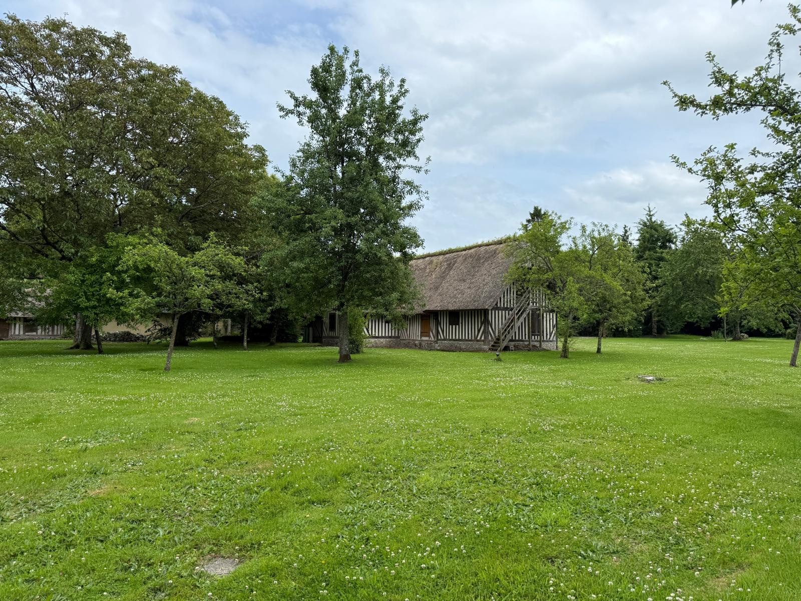 Propriété Normande sur son parc de 1 ha planté d'arbres fruitiers Une Maison d’habitation couverte en chaume comprenant une cuisine, une arrière cuisine , un double salon avec cheminée , une suite parentale au rdc , un dégagement , un wc 1er étage : 4 chambres , un wc et une salle de bain - Un bâtiment en colombages avec charretterie couvert en chaume - Un bâtiment en colombages couvert en chaume clos de mur formant un petit jardin à l'abris des regards - Un bâtiment en colombages avec un pressoir couvert en chaume (partiellement aménagé)